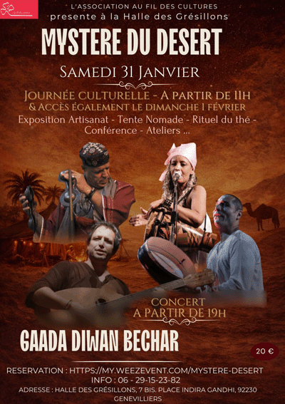 Mystere du désert à Gennevilliers 92230 31 janvier 2026 avec « Au fil des cultures » à partir de 11 h